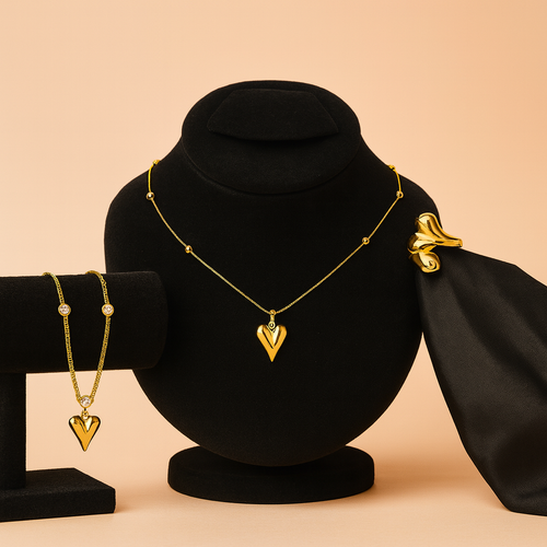 Rs.1,599.00 Rs.2,650.00This sophisticated jewelry set features a modern nail-inspired design crafted in a polished gold-tone finish. Accented with shimmering crystal details, the bracelet and matching ring create a bold yet elegant statement. Designed for contemporary luxury,...