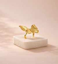 Grace meets sophistication with this Elegant Gold Butterfly Ring, a timeless piece designed to capture beauty in motion. Crafted with a radiant gold finish, the butterfly features delicately textured wings that reflect light with every movement, creating a refined yet eye-catching look.